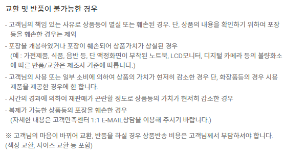 -공급 받으신 상품 및 용역의 내용이 표시, 광고 내용과 다르거나 다르게 이행된 경우에는 공급받은 날로부터 3일이내